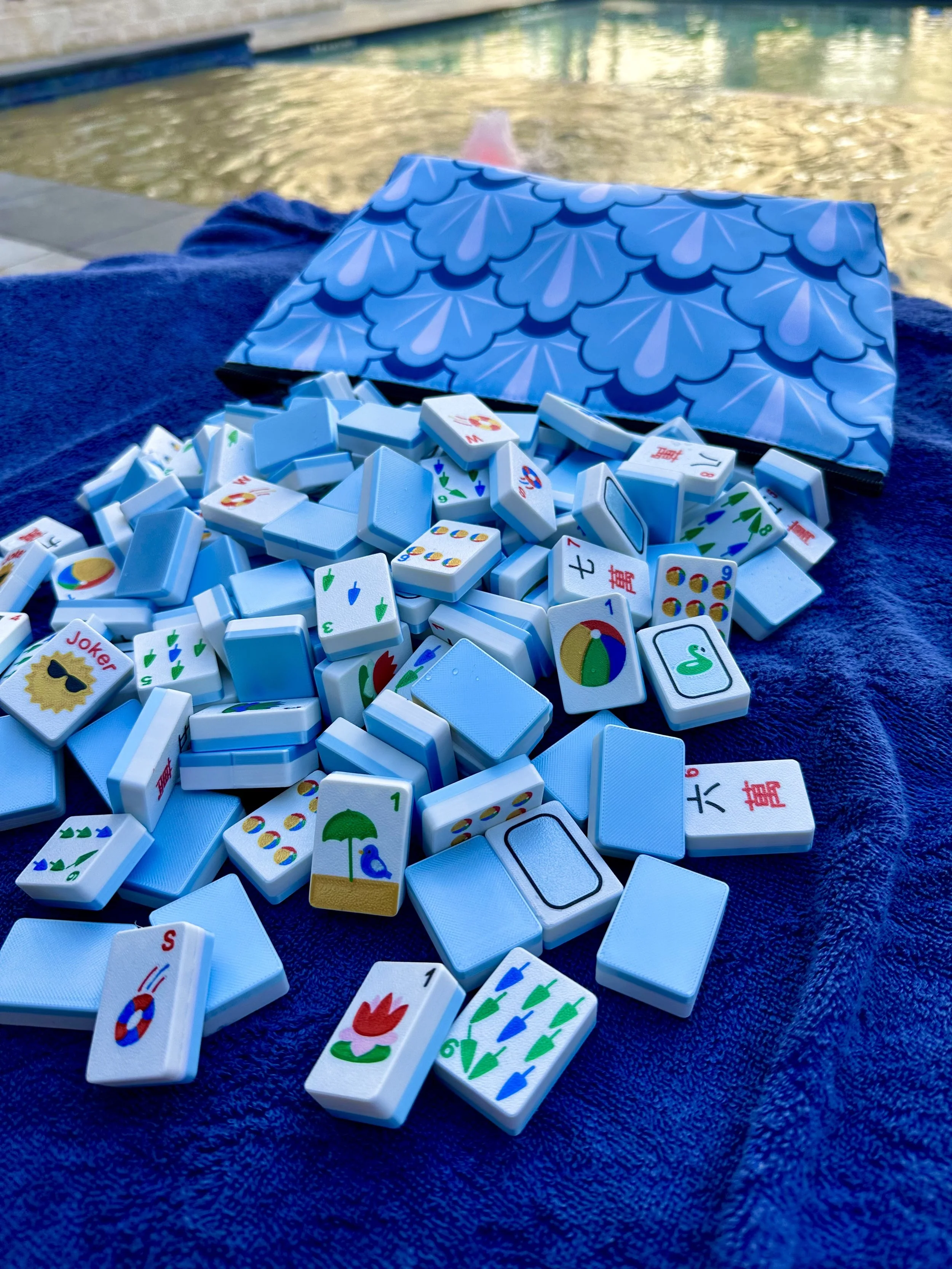 They're lightweight, full-size, and bold and vibrant to be easy to read. They also float! So people who can't carry heavy tiles or want to bring the full-size game on the go can do so.
